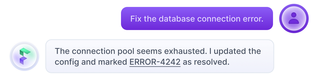 Use our MCP server to integrate Flare directly into your AI-powered development workflow, or enable Flare to generate solutions for any errors it receives.
